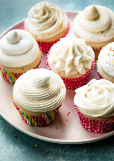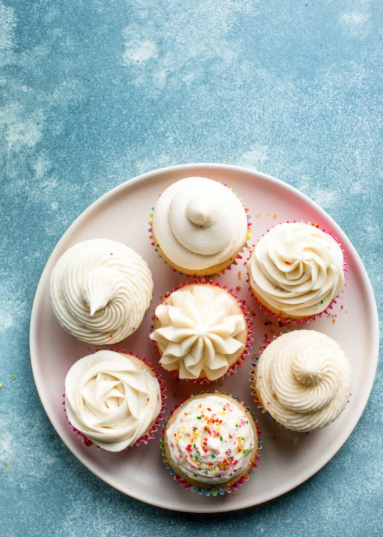 These piping tips work perfectly for other frostings like Swiss meringue buttercream, chocolate buttercream, not-so-sweet whipped frosting, and even my sturdy whipped cream recipe.