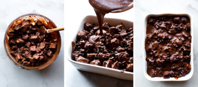 - For extra texture, I suggest an add-in or two. I highly recommend chocolate chips or chopped chocolate (pick up a third 4-ounce chocolate bar). These chunks of chocolate paired with the chocolate soaked bread is outstanding. I also like dried cherries, peanut butter chips, or chopped pecans. I can’t say this enough: I loved the chocolate chips between the soft chocolate-soaked bread. And I can’t say this enough either: this tastes like a pan of warm brownies. But better.