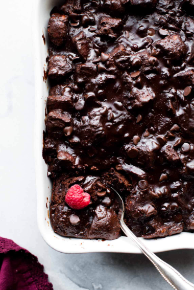 This sinfully rich dark chocolate bread pudding tastes like a pan of warm fudgy brownies. For the best taste and texture, use challah bread and real chocolate.
