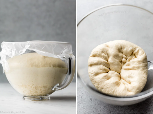 After you make and knead the dough, let it rise. Then, punch it down to release the air: