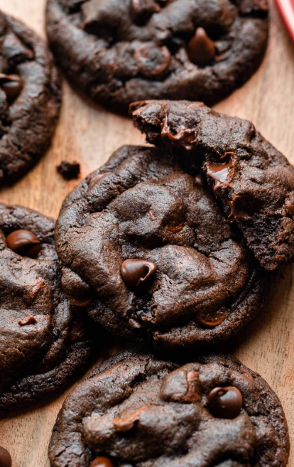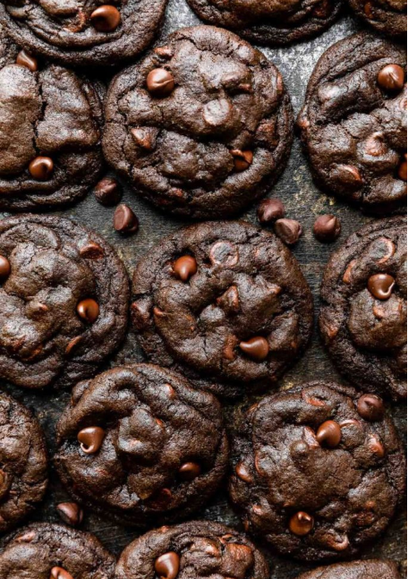 The best recipe for double chocolate chip cookies must obviously include extra doses of chocolate. These soft-baked thick and chunky cookies are as indulgent as they look: rich and fudge-like with chewy centers, slightly crisp edges, and oodles of melty chocolate chips in each glorious bite.